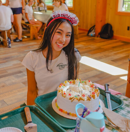 After a birthday serenade from the camp community, campers, CITs and staff enjoy birthday cake with their bunk family. Chef’s special chocolate cake with a center of ice cream topped with hot fudge and strawberries is a true delight! Please note we offer gluten and dairy-free options as needed.